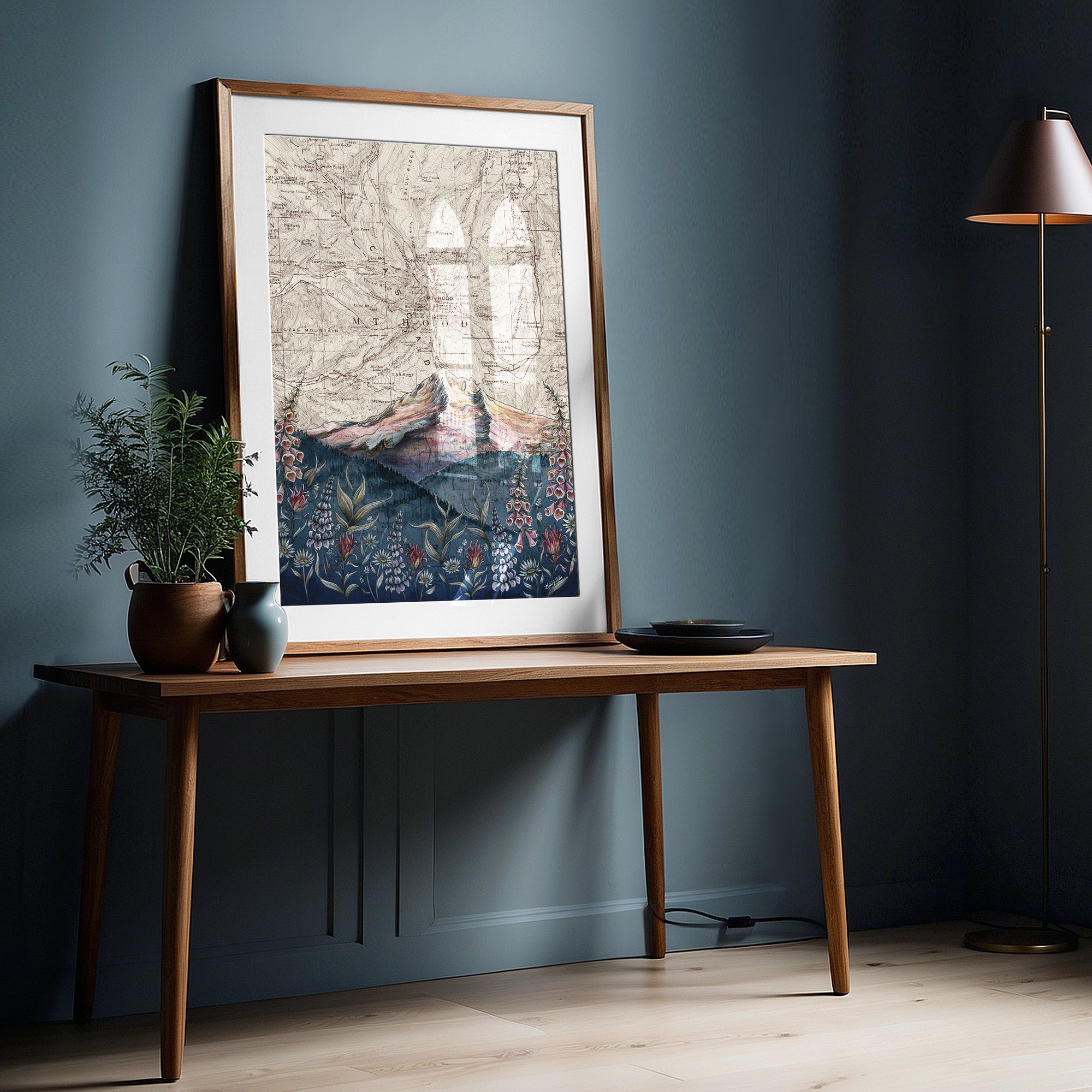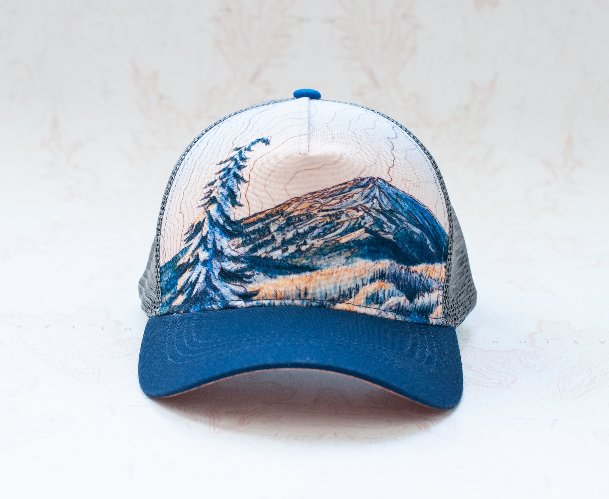Each painting and print by Katie Reim is a unique blend of acrylic and ink layered over digitally altered vintage topographic maps, creating a textured representation of beloved landscapes. Katie’s art reflects her passion for the outdoors, capturing the beauty of mountains, forests, and trails to bring the spirit of wild places into your home.