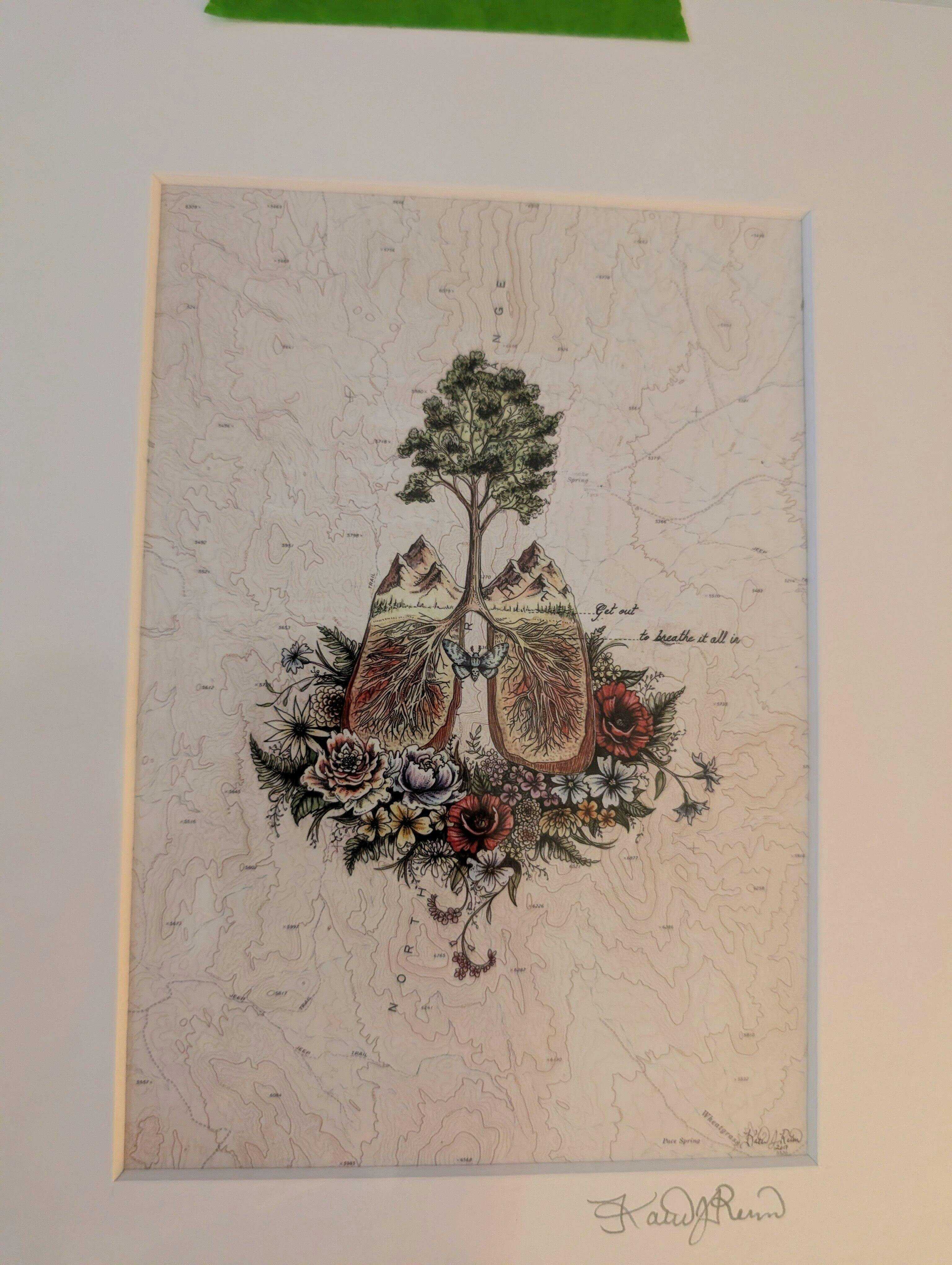 - 5x7” in 8x10” mat, needs an 8x10” frame